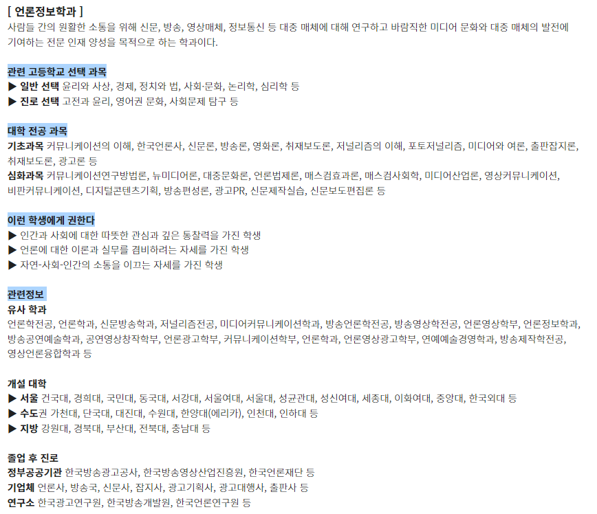 | 고등학교 선택과목 가이드 2 - 학과별 (0) | 2022.11.17 |