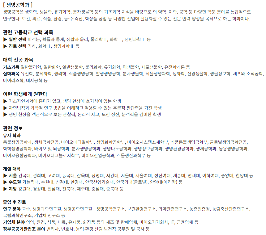 | 고등학교 선택과목 가이드 2 - 학과별 (0) | 2022.11.17 |