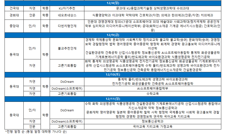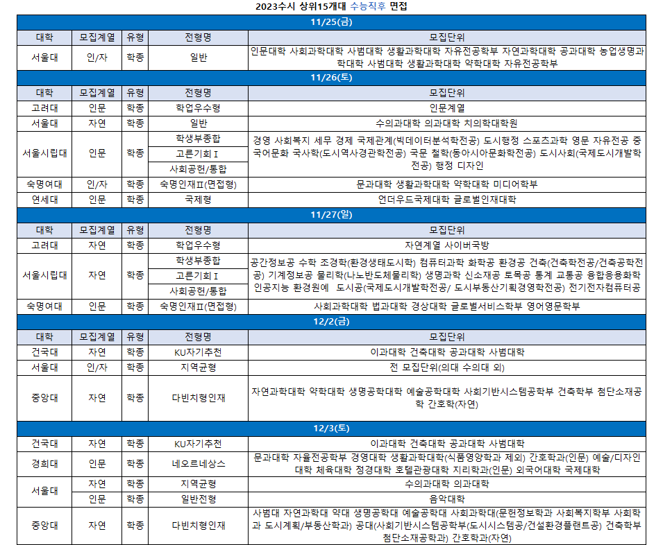 □ 수시 면접 일정