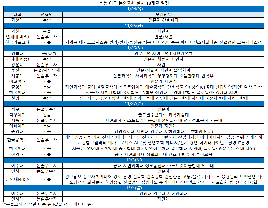 □ 논술 일정