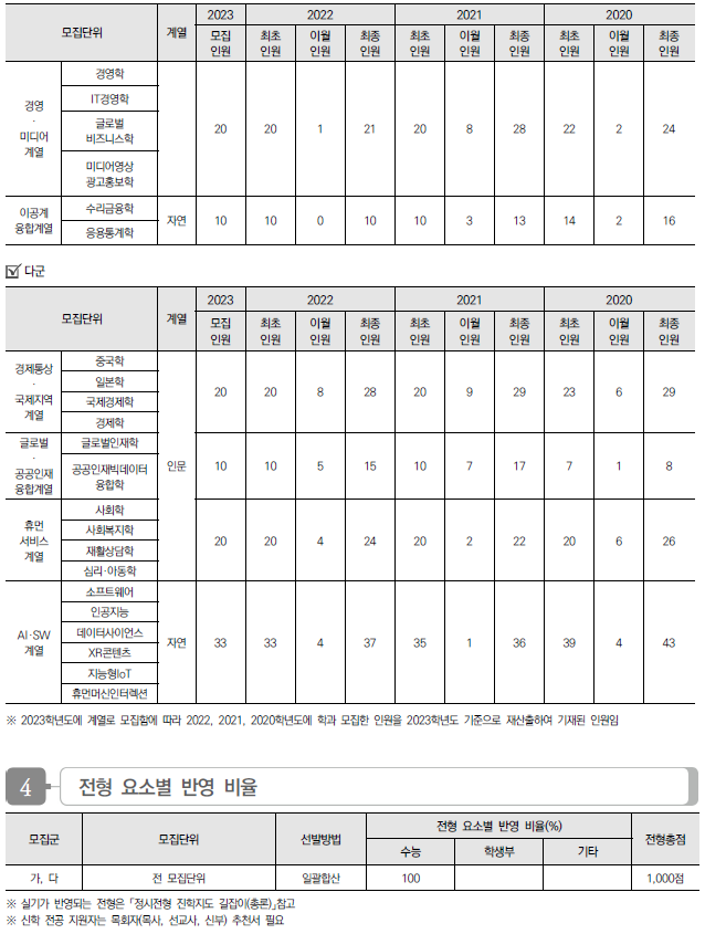 2023학년도 청주대, 평택대, 한경국립대, 한국공학대, 한국교통대 정시 모집요강 및 입시결과(커트라인)