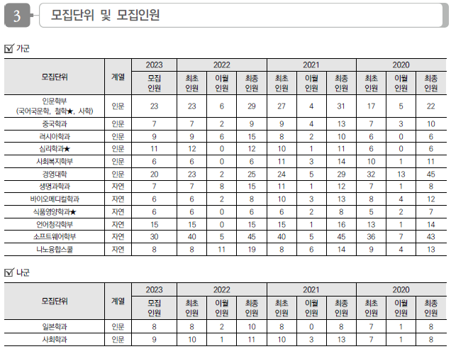 2023학년도 경북대, 경상대, 공주대, 부산대 정시 모집요강 및 입시결과(커트라인)