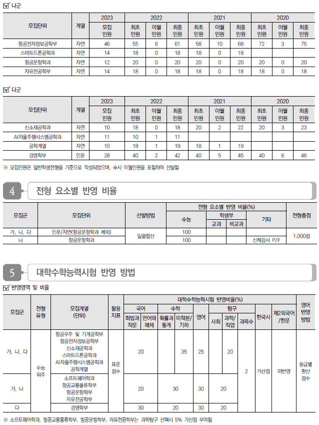 2023학년도 한국기술교육대, 한국 항공대, 한림대, 한세대, 한신대 정시 모집요강 및 입시결과(커트라인)