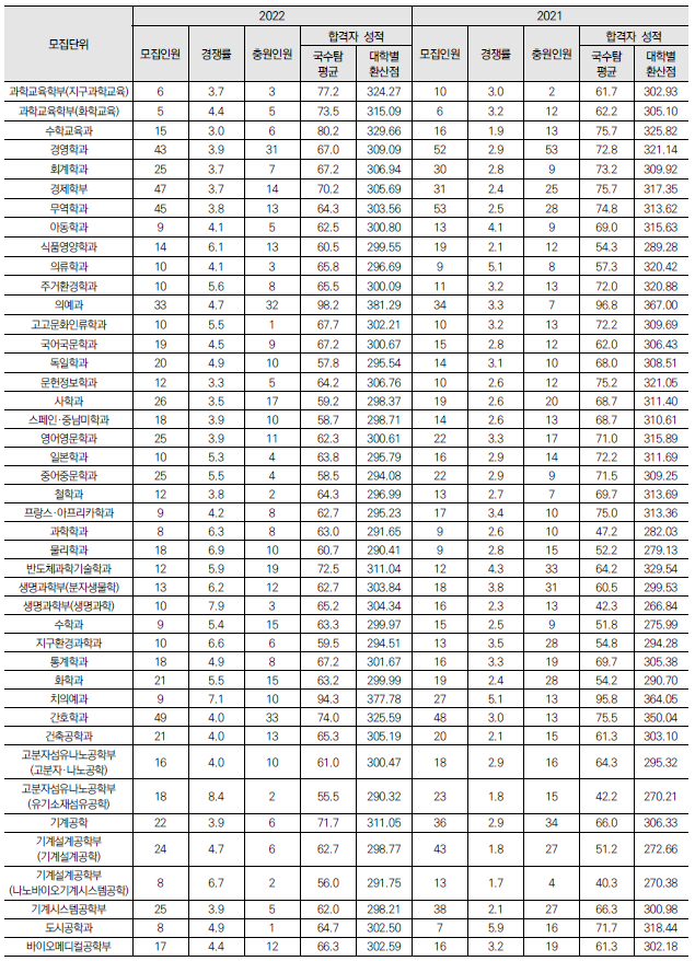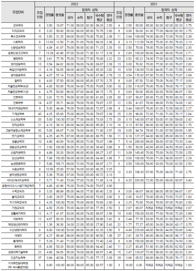 | 2023학년도 충남대, 충북대, 한국교원대 정시 모집요강 및 입시결과(커트라인) (0) | 2022.12.15 |