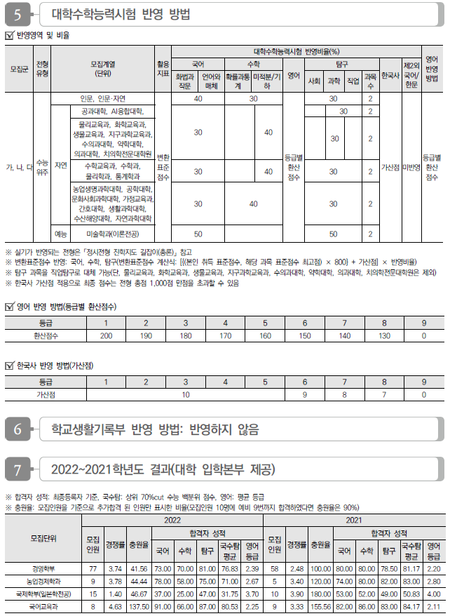 | 2023학년도 경북대, 경상대, 공주대, 부산대 정시 모집요강 및 입시결과(커트라인) (0) | 2022.12.15 |