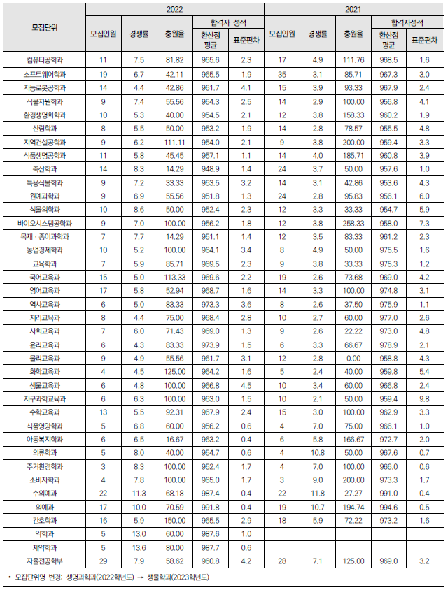 | 2023학년도 전남대, 전북대, 제주대 정시 모집요강 및 입시결과(커트라인) (0) | 2022.12.15 |
