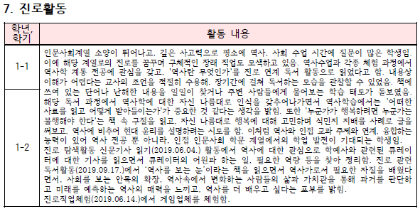 | 진로활동 세특 예시 - 인문계열 (0) | 2023.02.05 |