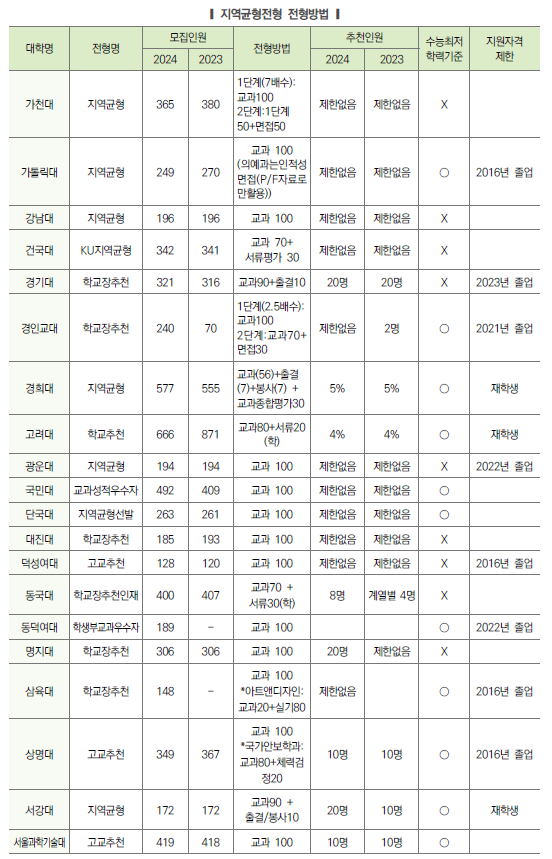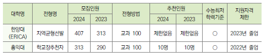 | 2024학년도 학생부종합전형(학종) 대학별 전형방법 및 수능최저등급 (0) | 2023.04.10 |