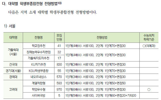 | 2024학년도 수시 학생부종합전형(학종) 전형방법 (0) | 2023.04.10 |