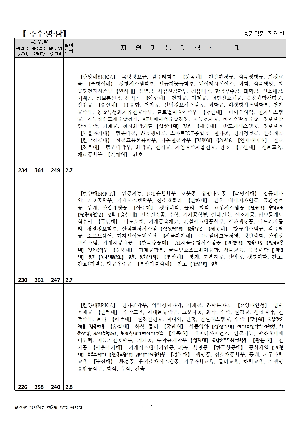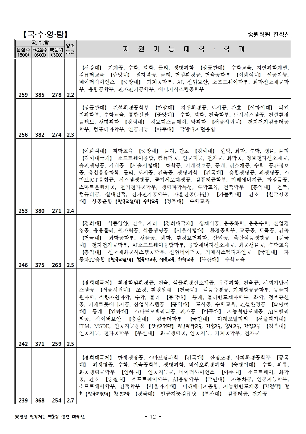 | 2024학년도 수시 특별전형 지역인재전형 (의대, 치대, 약대, 한의대, 수의대, 간호학과, 교대 포함) 전형방법 및 수능최저등급 (0) | 2023.04.12 |