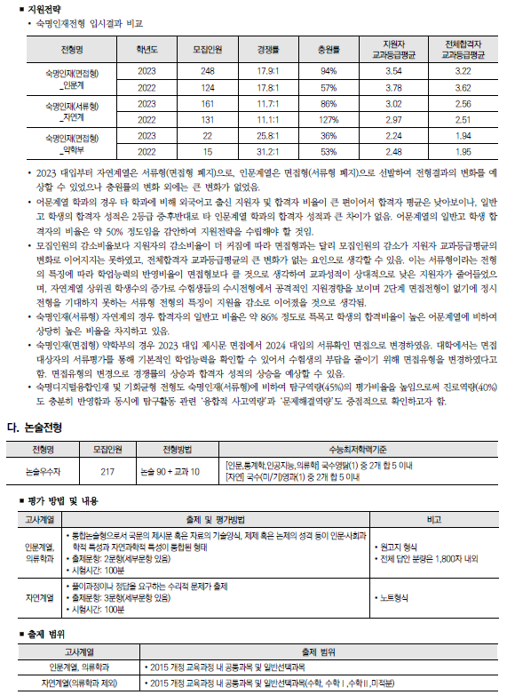| 2024학년도 연세대, 이화여대 수시 모집요강, 반영방법, 수능최저 및 2023 입시결과(커트라인) (0) | 2023.08.05 |