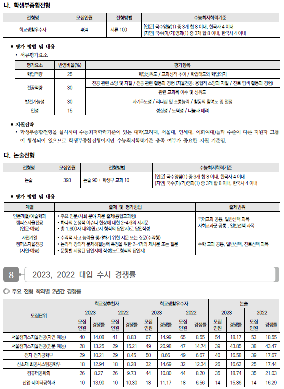 | 2024학년도 세종대, 숙명여대, 숭실대 수시 모집요강, 반영방법, 수능최저 및 2023 입시결과(커트라인) (0) | 2023.08.02 |