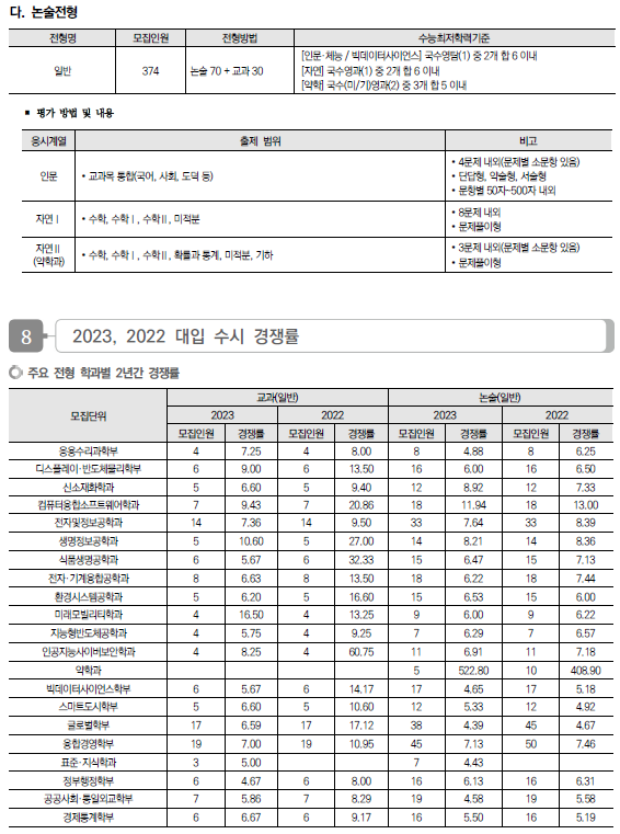 | 2024학년도 수원대, 순천향대, 신한대 수시 모집요강, 반영방법, 수능최저 및 2023 입시결과(커트라인) (0) | 2023.08.06 |