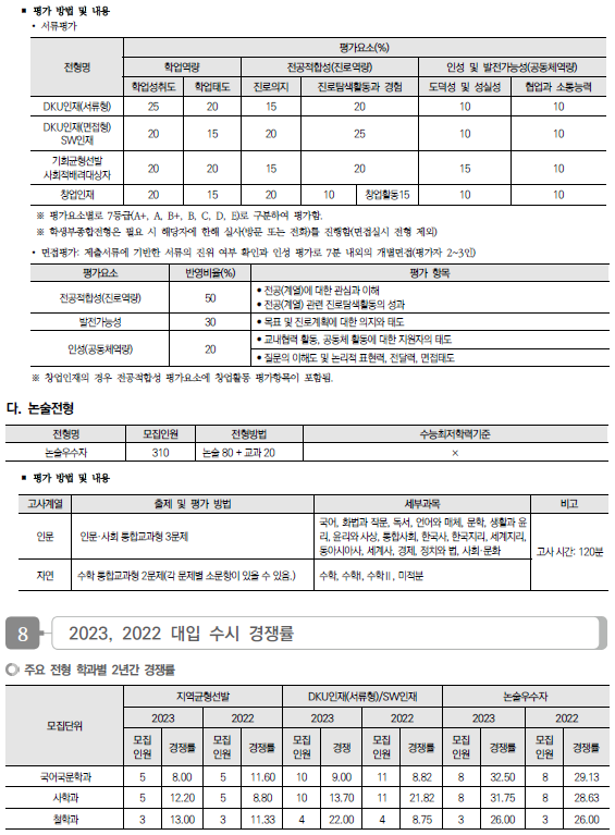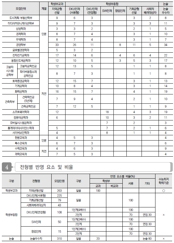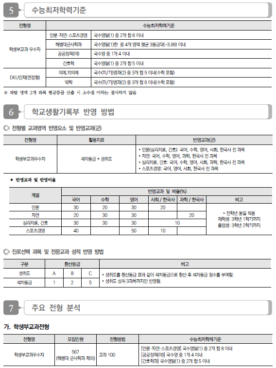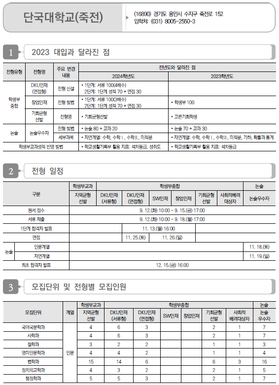 2024학년도 단국대(죽전), 단국대(천안) 수시 모집요강, 반영방법, 수능최저 및 2023 입시결과(커트라인)
