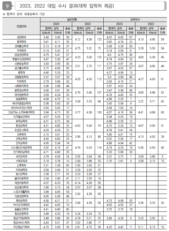 2024학년도 한국교원대, 한국항공대, 한림대, 한세대 수시 모집요강, 반영방법, 수능최저 및 2023 입시결과(커트라인)