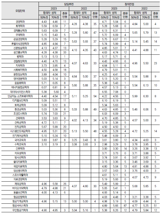 2024학년도 인천대, 인하대, 차의과학대 수시 모집요강, 반영방법, 수능최저 및 2023 입시결과(커트라인)