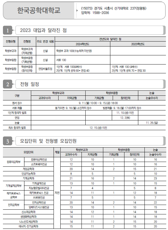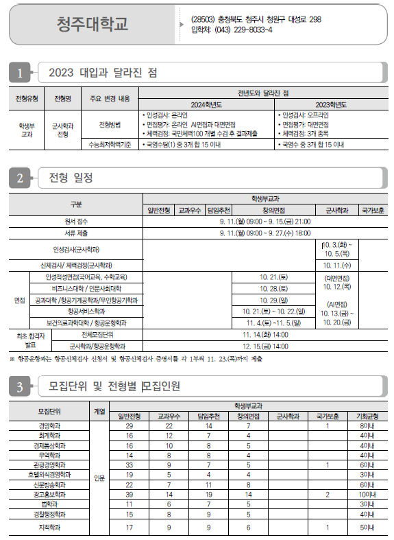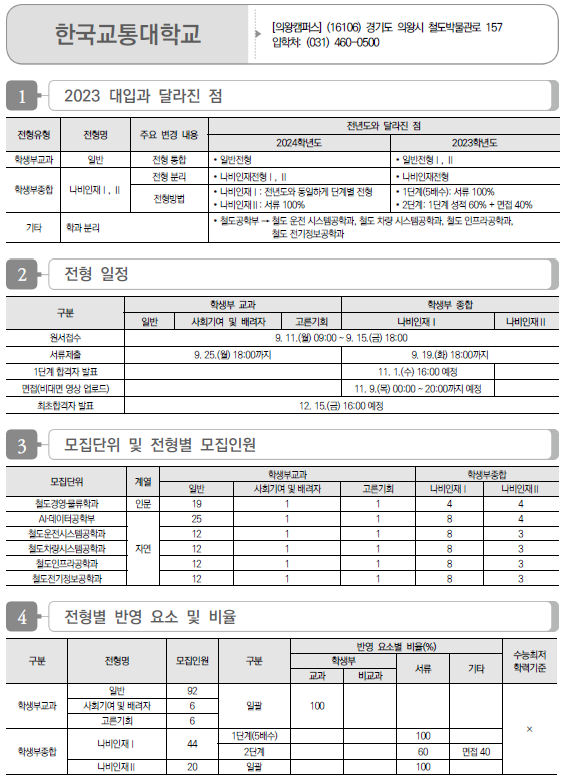 2024학년도 한국 교통대, 청주대, 한국공학대 수시 모집요강, 반영방법, 수능최저 및 2023 입시결과(커트라인)