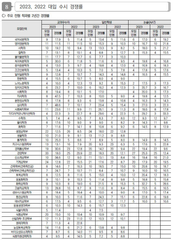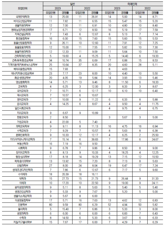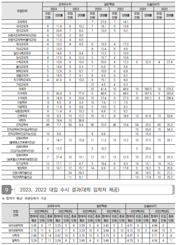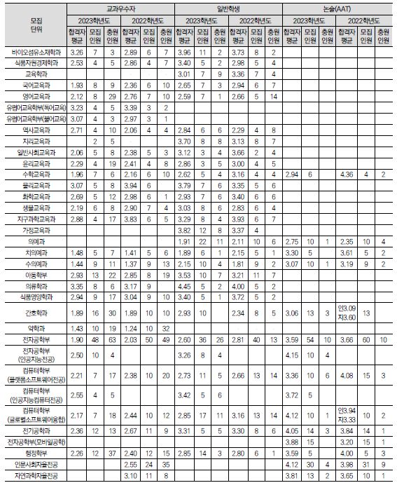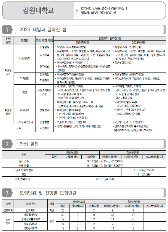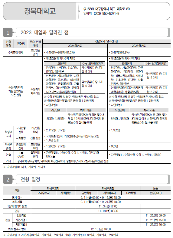 2024학년도 경북대, 강원대 수시 모집요강, 반영방법, 수능최저 및 2023 입시결과(커트라인)