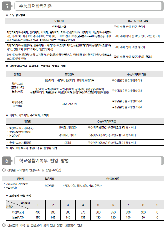 2024학년도 부산대, 경상국립대 수시 모집요강, 반영방법, 수능최저 및 2023 입시결과(커트라인)