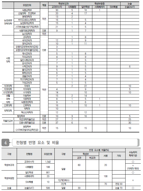 2024학년도 전남대, 전북대 수시 모집요강, 반영방법, 수능최저 및 2023 입시결과(커트라인)