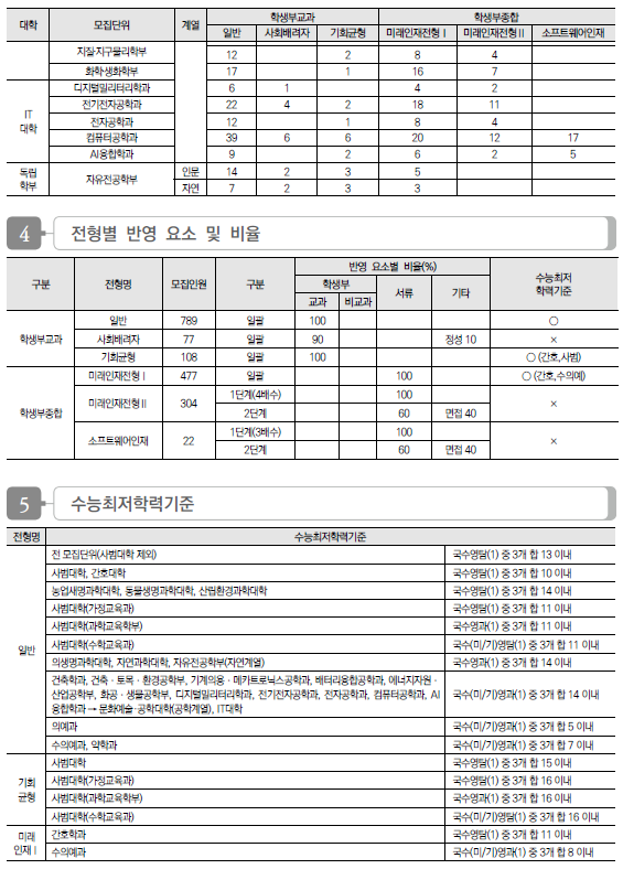 2024학년도 한국 교통대, 청주대, 한국공학대 수시 모집요강, 반영방법, 수능최저 및 2023 입시결과(커트라인)