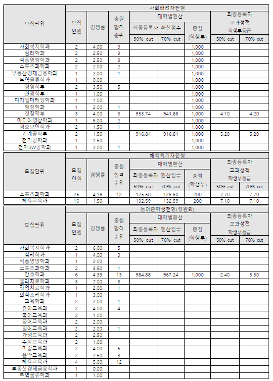 | 2023학년도 강원대(본교), 강원대(삼척), 강릉원주대 수시, 정시 입시결과(커트라인) (0) | 2023.08.16 |