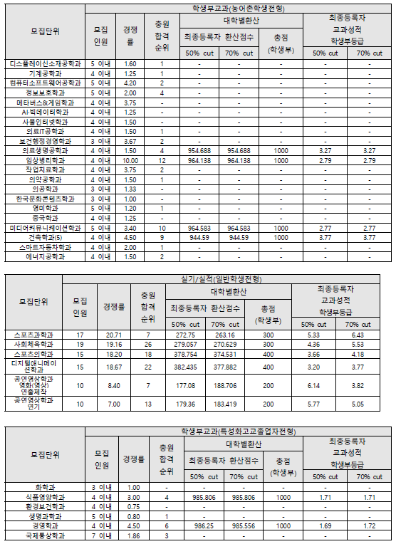 | 2023학년도 숭실대, 아주대 수시, 정시 입시결과(커트라인) (0) | 2023.08.23 |