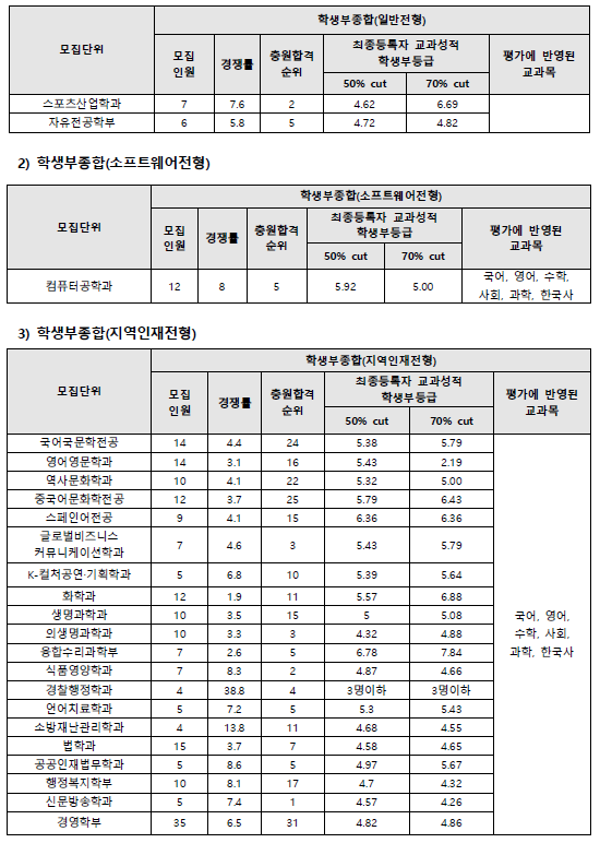 | 2023학년도 제주대, 전주교대, 중부대 수시, 정시 입시결과(커트라인) (0) | 2023.08.27 |