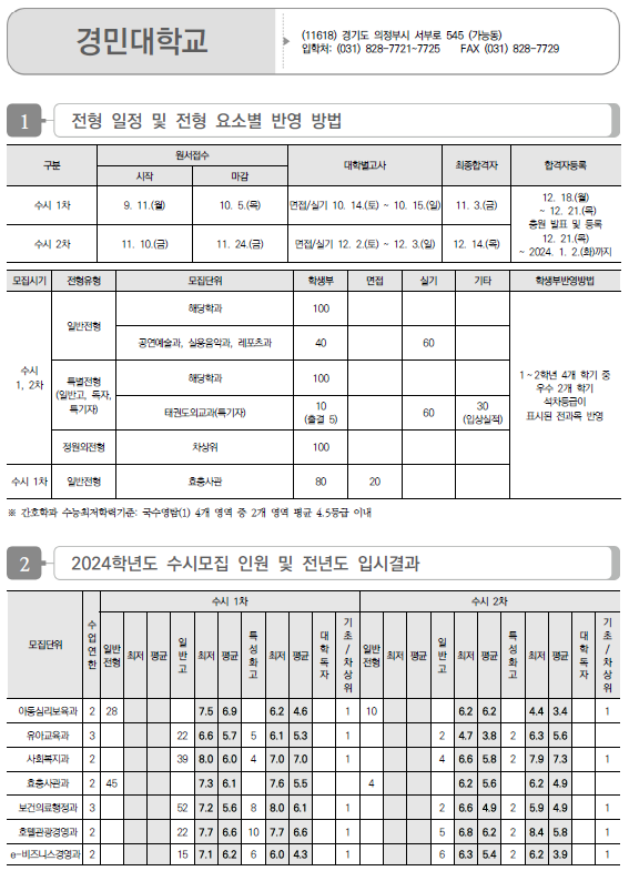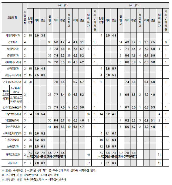 | 2024학년도 계원예술대, 국제대, 김포대, 대경대, 대림대 수시 일정 및 반영 방법, 입시결과(커트라인) (0) | 2023.09.05 |