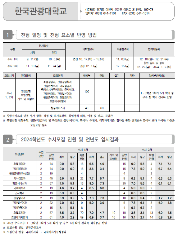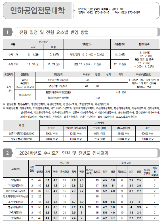| 2024학년도 용인예술과학대, 웅지세무대, 유한대, 인덕대, 인천재능대 수시 일정 및 반영 방법, 입시결과(커트라인) (0) | 2023.09.06 |