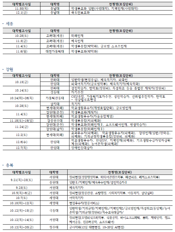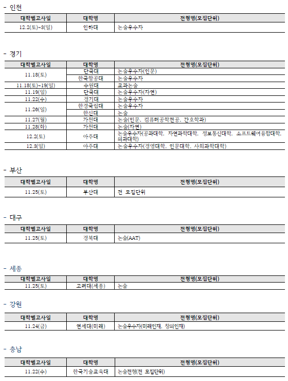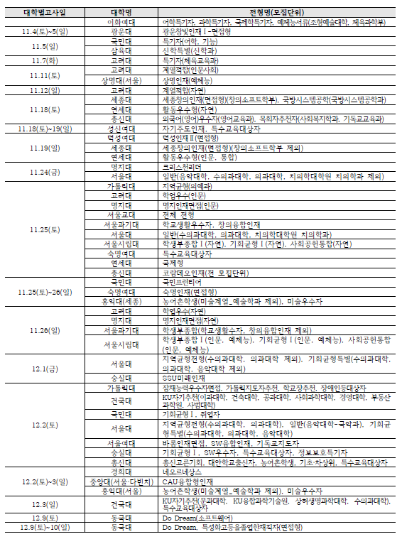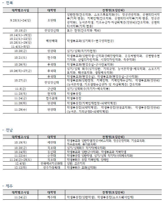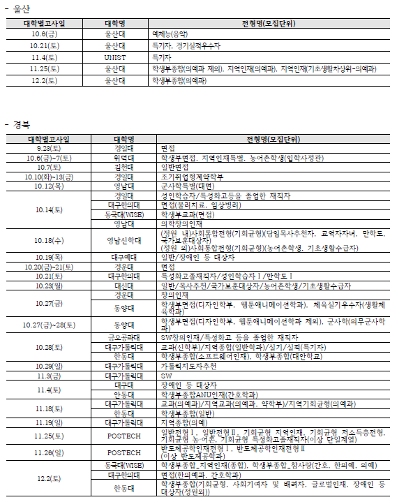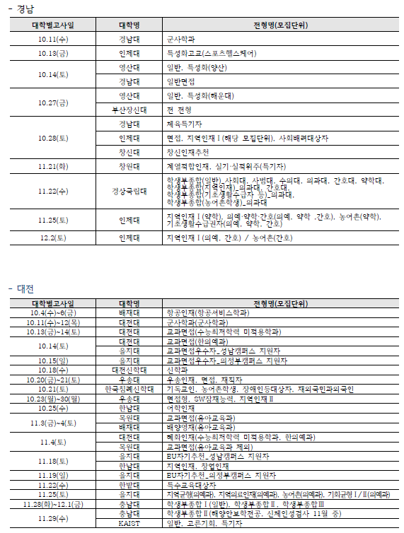 | 2024학년도 대입 일정 - 정시 가군, 나군, 다군 및 수능(정시) 선택과목 지정 현황 (0) | 2023.11.01 |