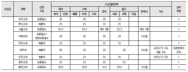 | 2024학년도 수능 정시 가채점 지원가능대학 점수-자연계열 (0) | 2023.11.19 |