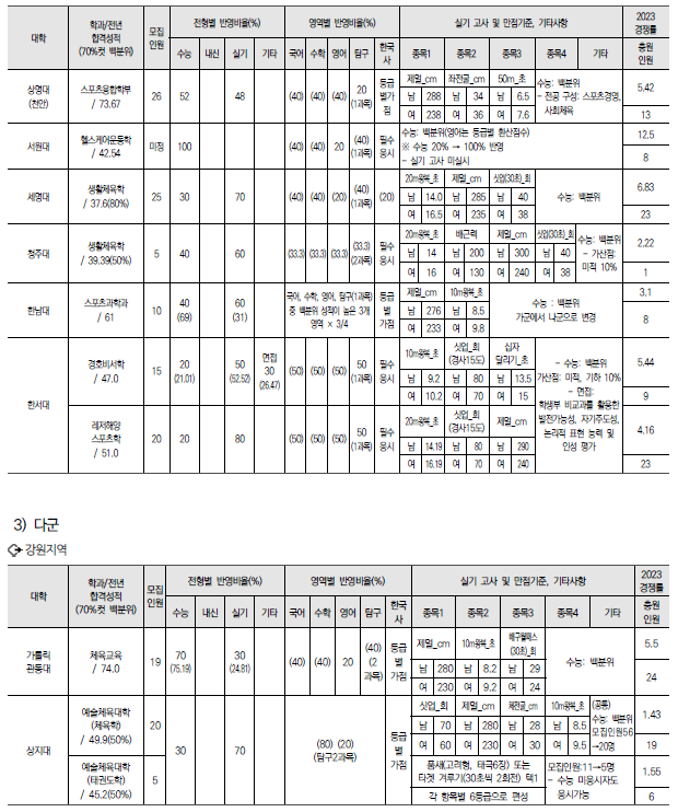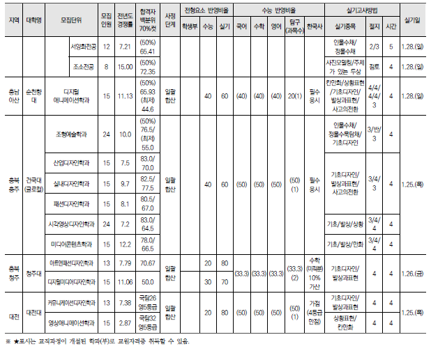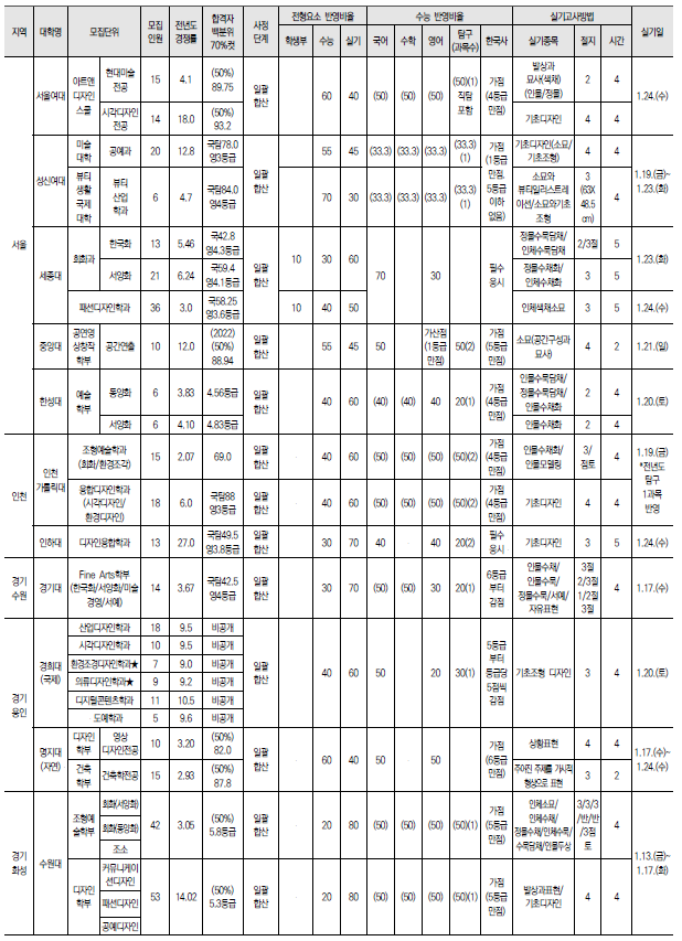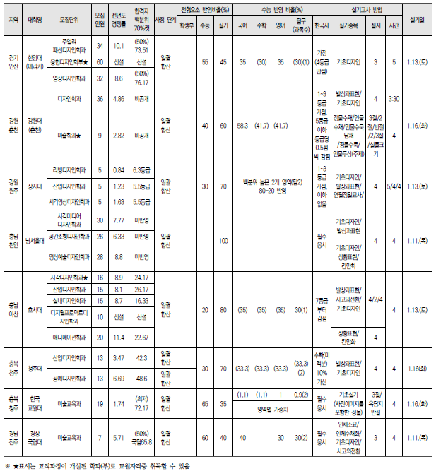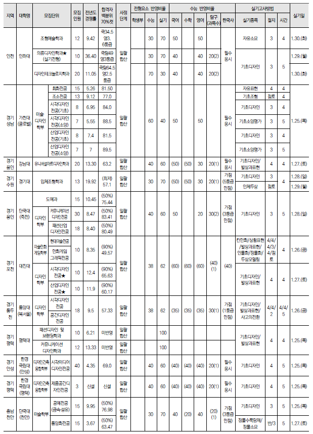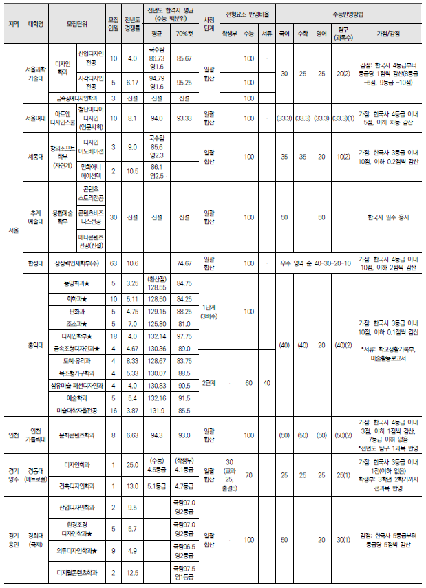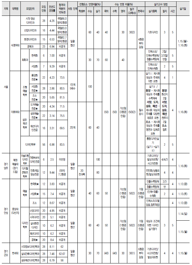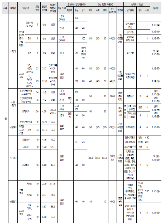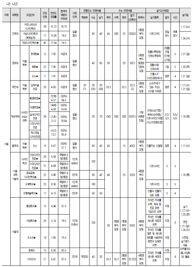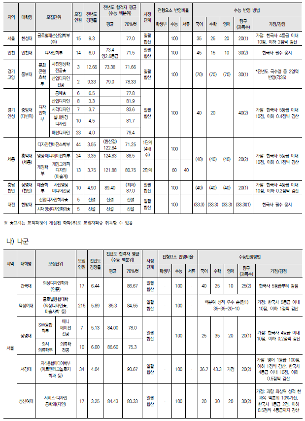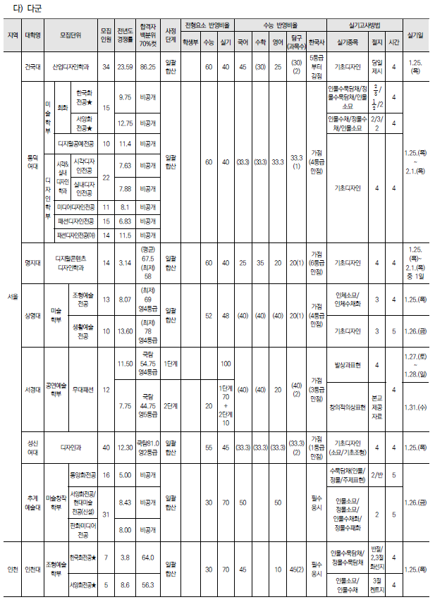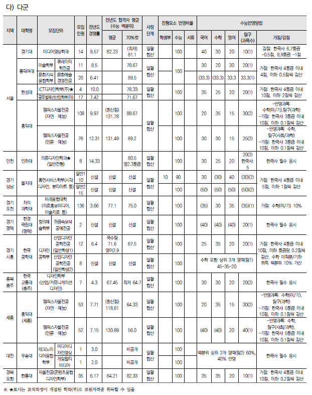 | 2024학년도 예체능학과(음악,연극,연기,영화,영상) 정시 가나다군 모집요강, 반영방법 (0) | 2023.12.15 |