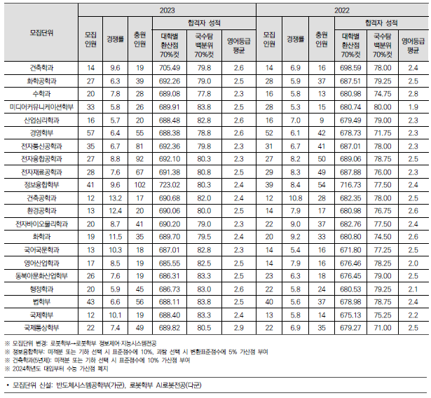 | 2024학년도 명지대, 동덕여대, 삼육대 정시 가나다군 모집요강, 반영방법 및 전년도 입시결과(커트라인) (0) | 2023.12.16 |