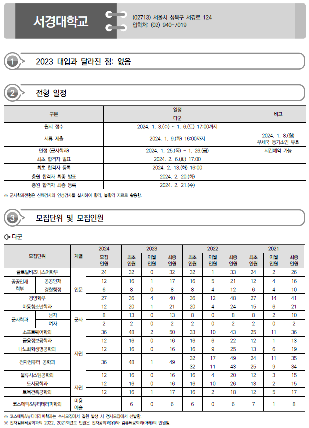 | 2024학년도 경희대, 고려대, 광운대 정시 가나다군 모집요강, 반영방법 및 전년도 입시결과(커트라인) (0) | 2023.12.16 |