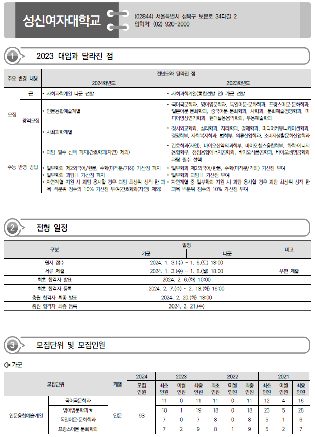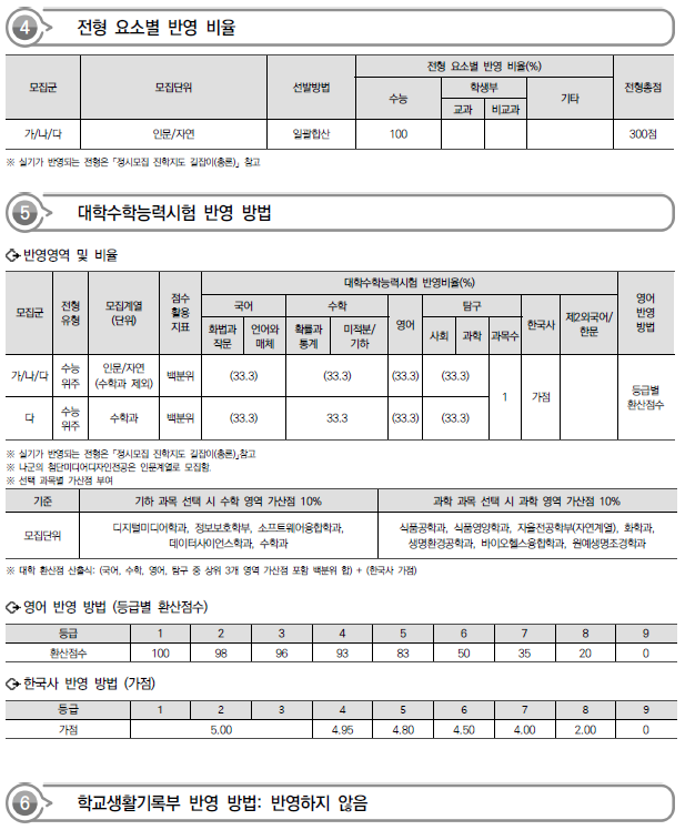 | 2024학년도 세종대, 숙명여대, 숭실대 정시 가나다군 모집요강, 반영방법 및 전년도 입시결과(커트라인) (0) | 2023.12.16 |