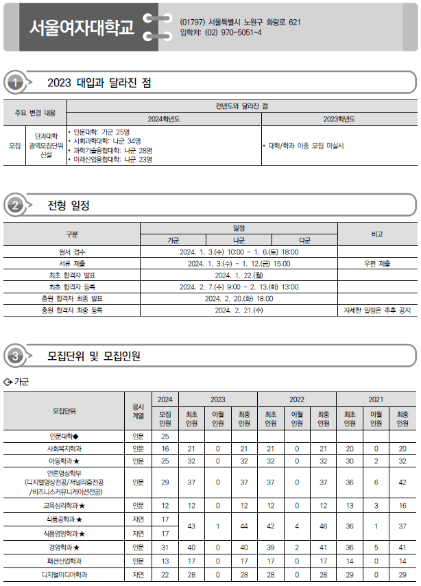 | 2024학년도 서강대, 상명대, 서경대 정시 가나다군 모집요강, 반영방법 및 전년도 입시결과(커트라인) (0) | 2023.12.16 |