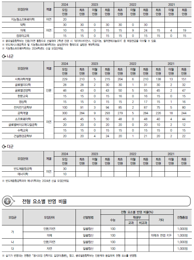 | 2024학년도 연세대, 이화여대, 중앙대 정시 가나다군 모집요강, 반영방법 및 전년도 입시결과(커트라인) (0) | 2023.12.16 |