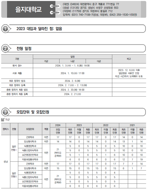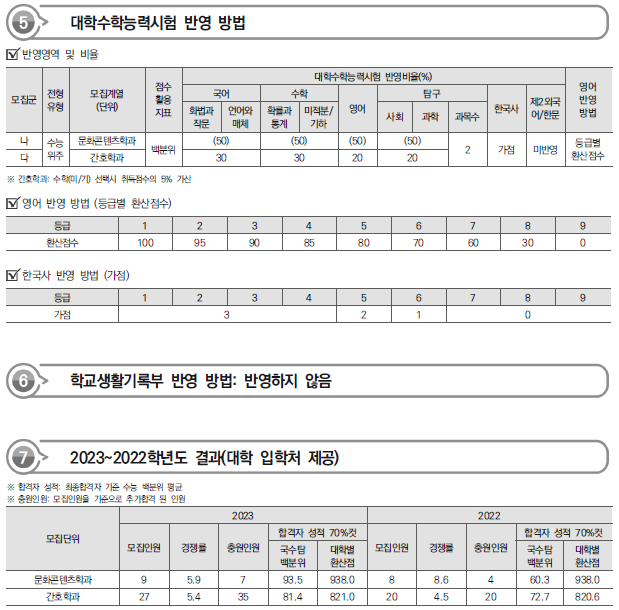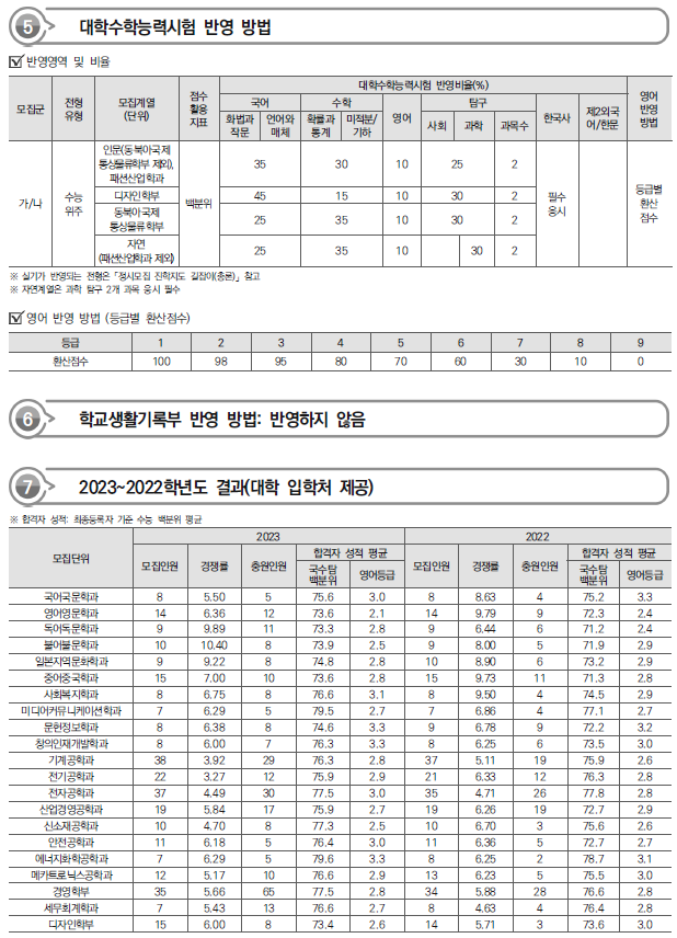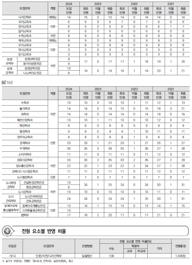 | 2024학년도 청주대, 평택대, 한경대 정시 가나다군 모집요강, 반영방법 및 전년도 입시결과(커트라인) (0) | 2023.12.20 |