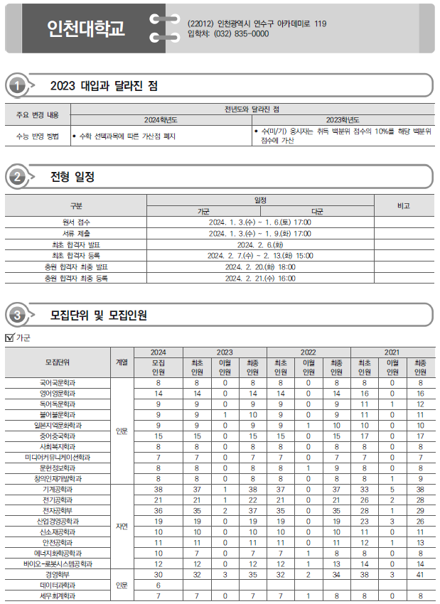 | 2024학년도 인하대, 중부대(고양), 차의과학대 정시 가나다군 모집요강, 반영방법 및 전년도 입시결과(커트라인) (1) | 2023.12.20 |