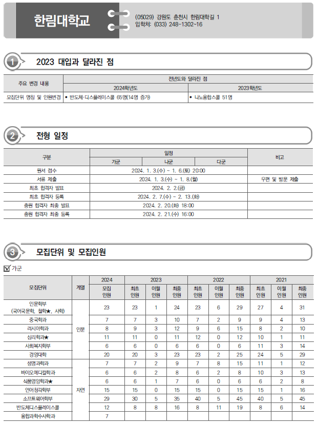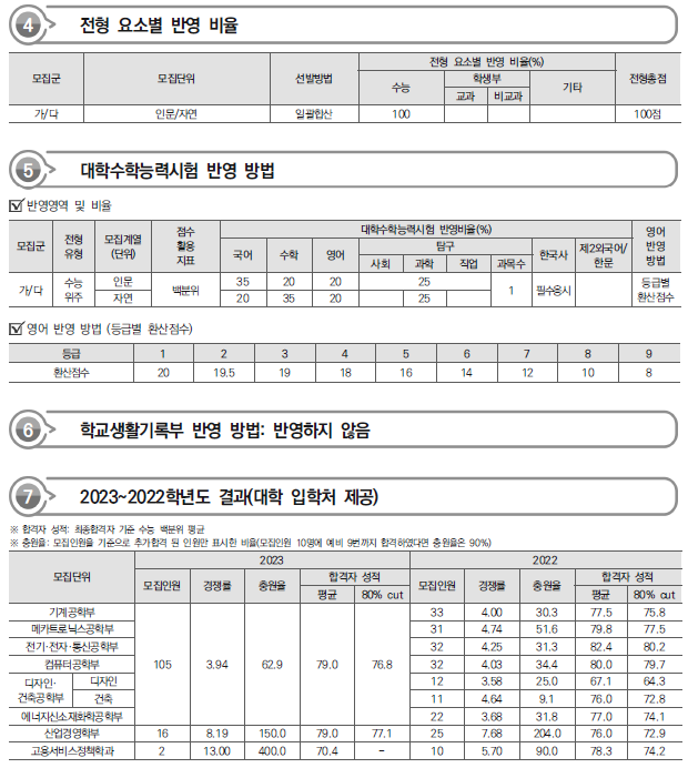 | 2024학년도 한양대(ERICA), 홍익대(세종), 호서대 정시 가나다군 모집요강, 반영방법 및 전년도 입시결과(커트라인) (0) | 2023.12.20 |