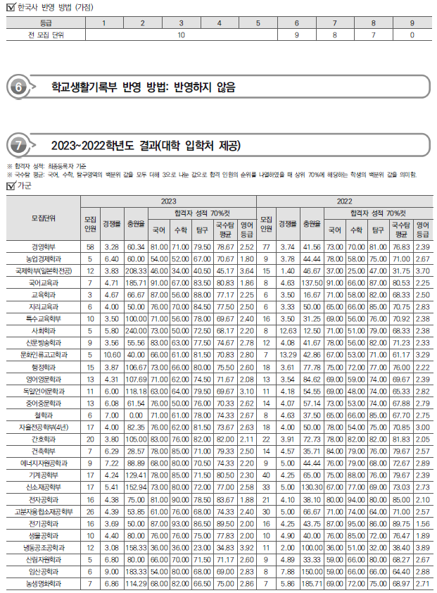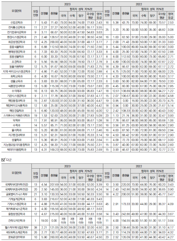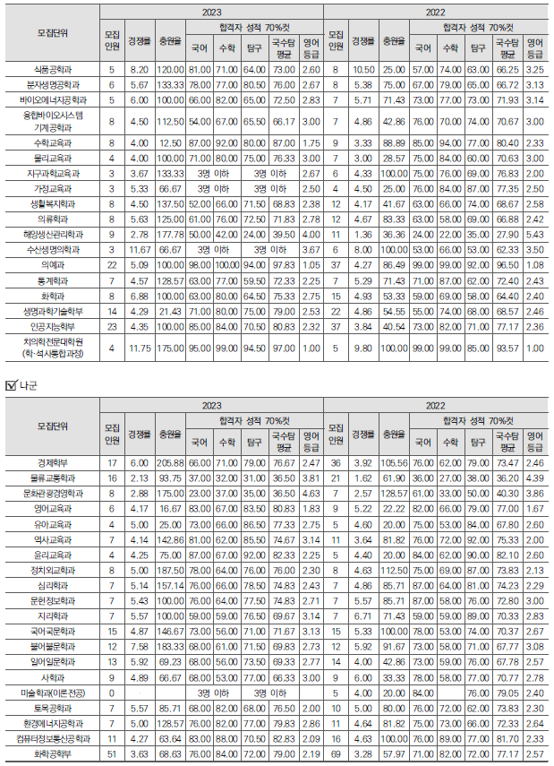 | 2024학년도 경상대, 부산대 정시 가나다군 모집요강, 반영방법 및 전년도 입시결과(커트라인) (0) | 2023.12.20 |