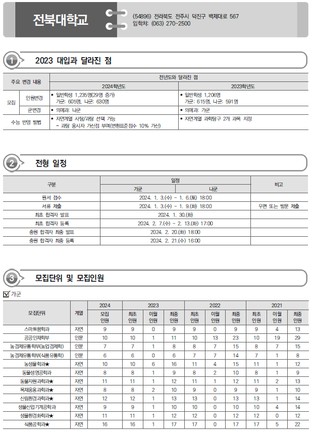 | 2024학년도 충남대, 충북대,제주대 정시 가나다군 모집요강, 반영방법 및 전년도 입시결과(커트라인) (0) | 2023.12.20 |