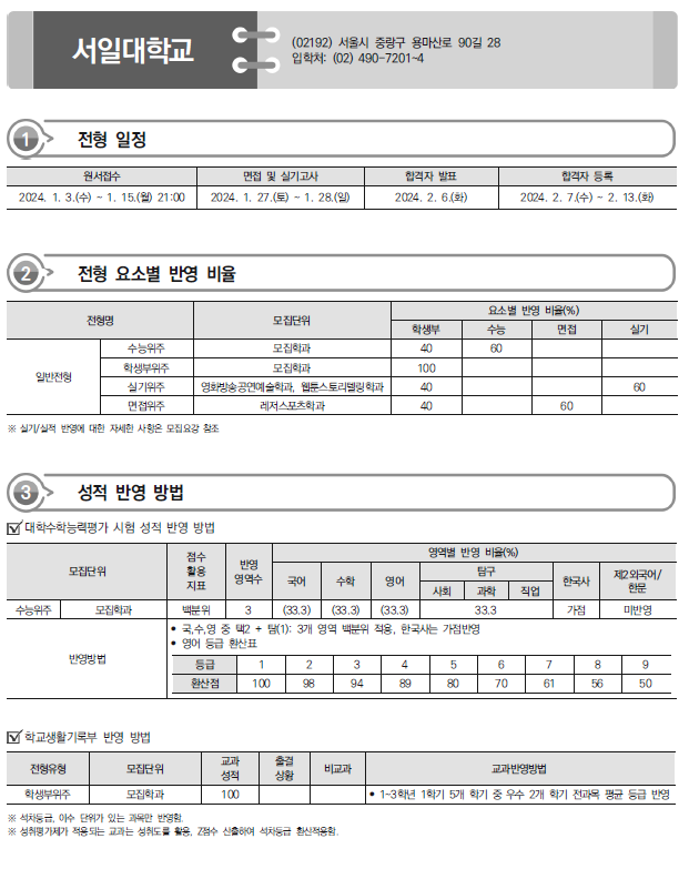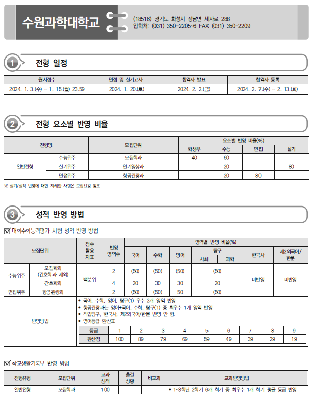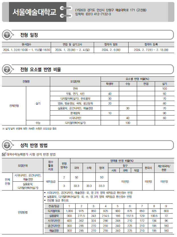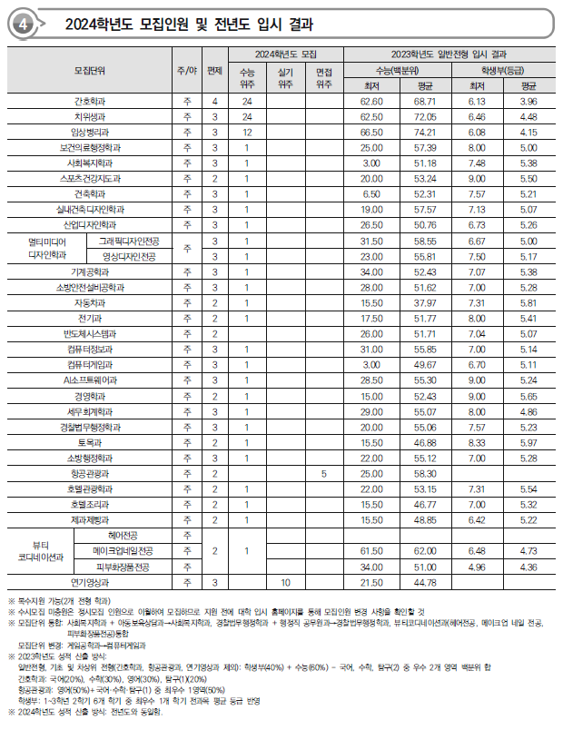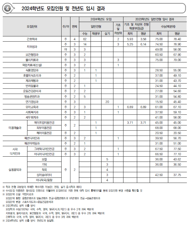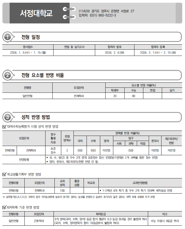 2024학년도 서울예술대,서일대,서정대,수원과학대,수원여대 정시 모집요강,반영방법 전년도 입시결과(커트라인)