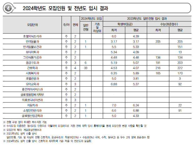 2024학년도 배화여자대,부천대,삼육보건대,서영대(파주캠),서울여자간호대 정시 모집요강,반영방법 전년도 입시결과(커트라인)
