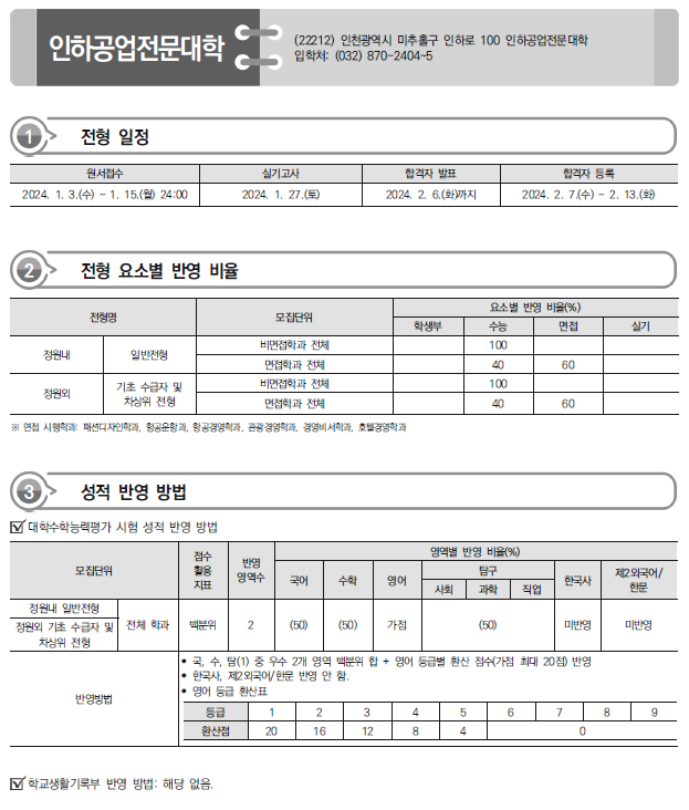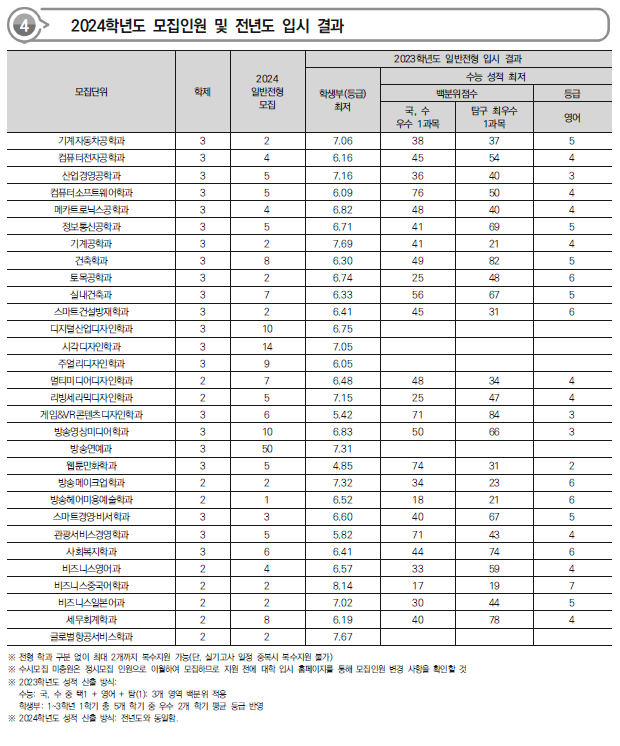 | 2024학년도 청강문화산업대,한국관광대,한양여대 정시 모집요강,반영방법 전년도 입시결과(커트라인) (0) | 2024.01.07 |