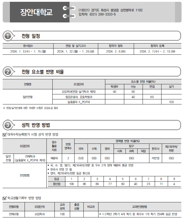 | 2024학년도 서울예술대,서일대,서정대,수원과학대,수원여대 정시 모집요강,반영방법 전년도 입시결과(커트라인) (0) | 2024.01.07 |