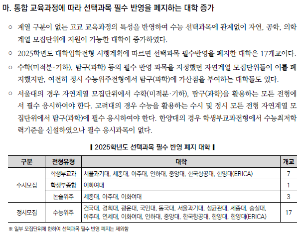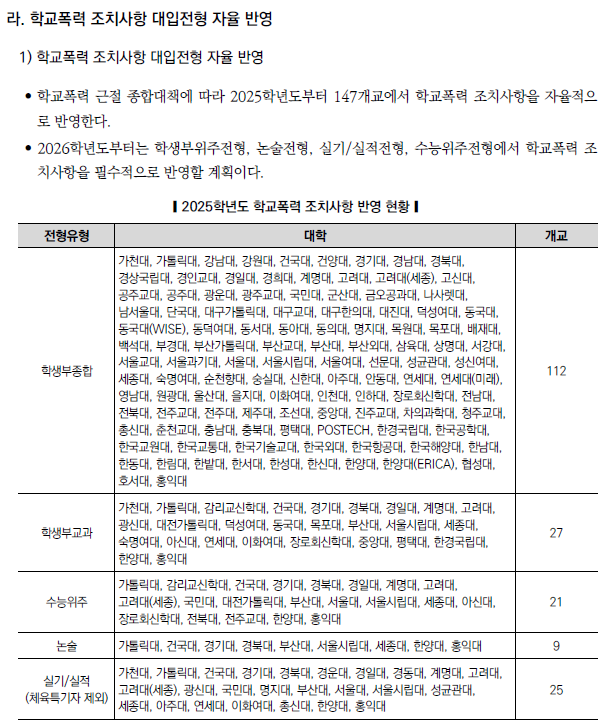 | 2025학년도 수시 모집 - 학생부종합전형(학종) 특징(평가방법,권장과목,수능최저) (0) | 2024.01.22 |