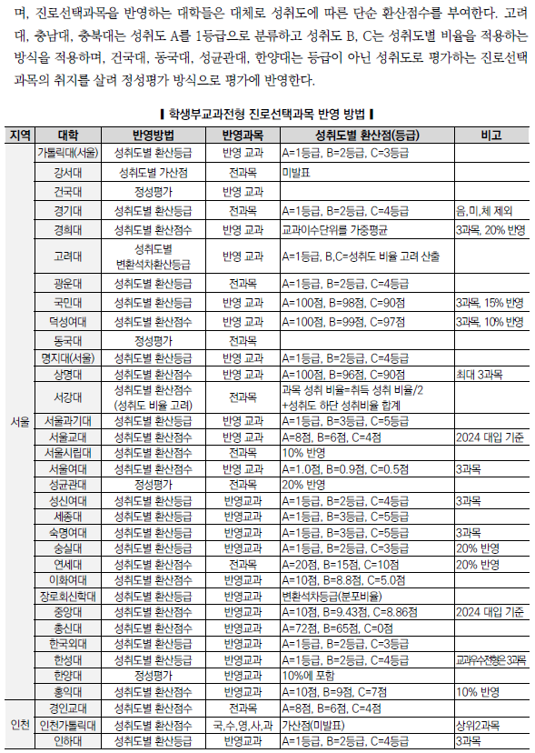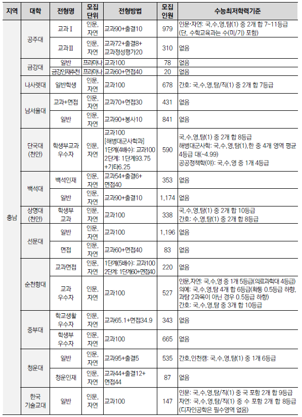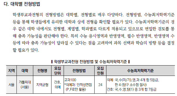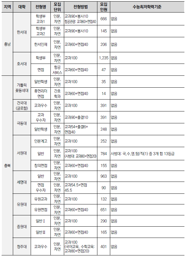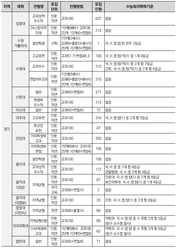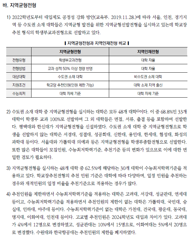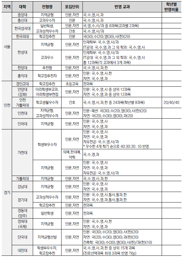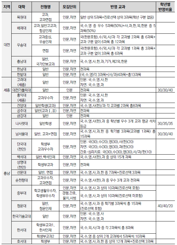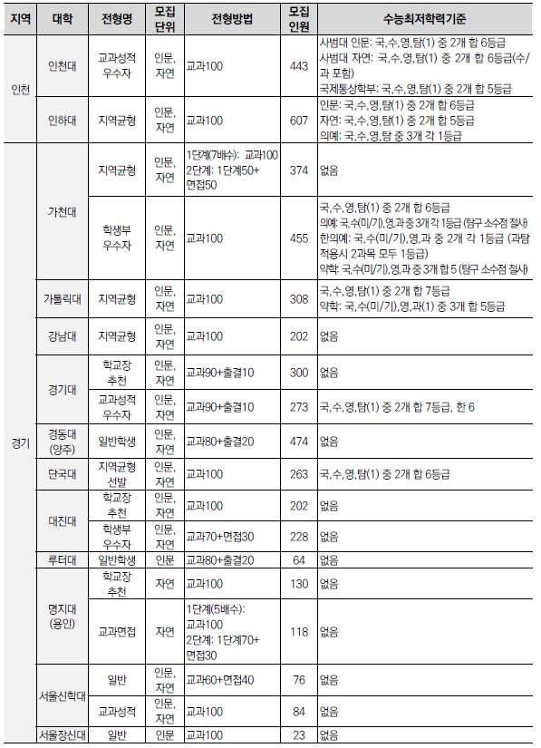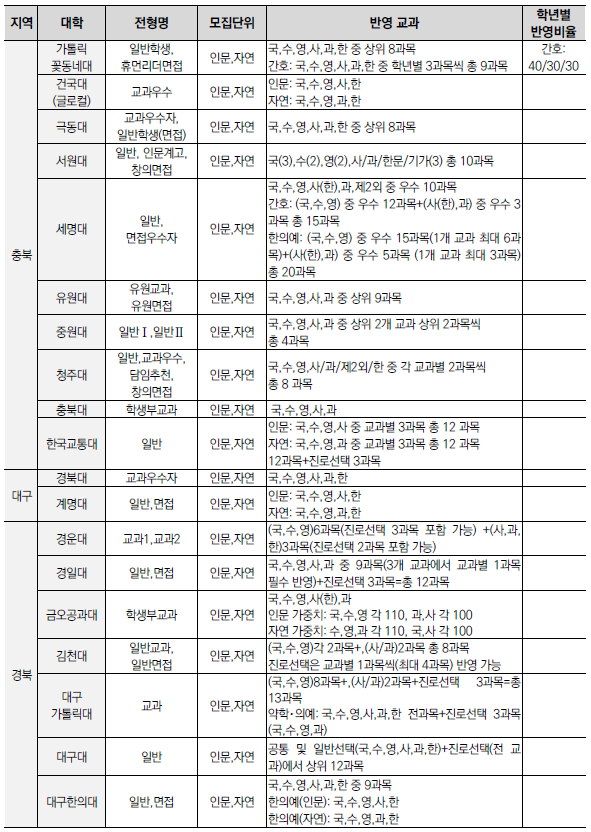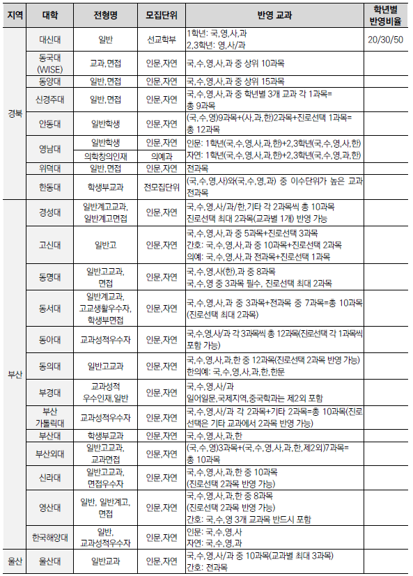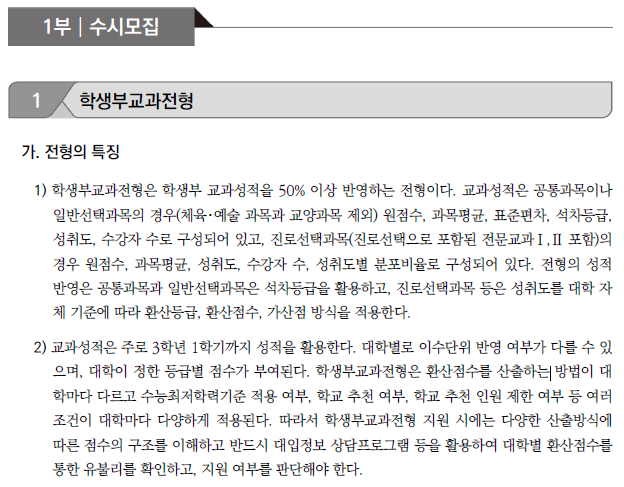 | 2025학년도 수시 모집 - 학생부종합전형(학종) 특징(평가방법,권장과목,수능최저) (0) | 2024.01.22 |