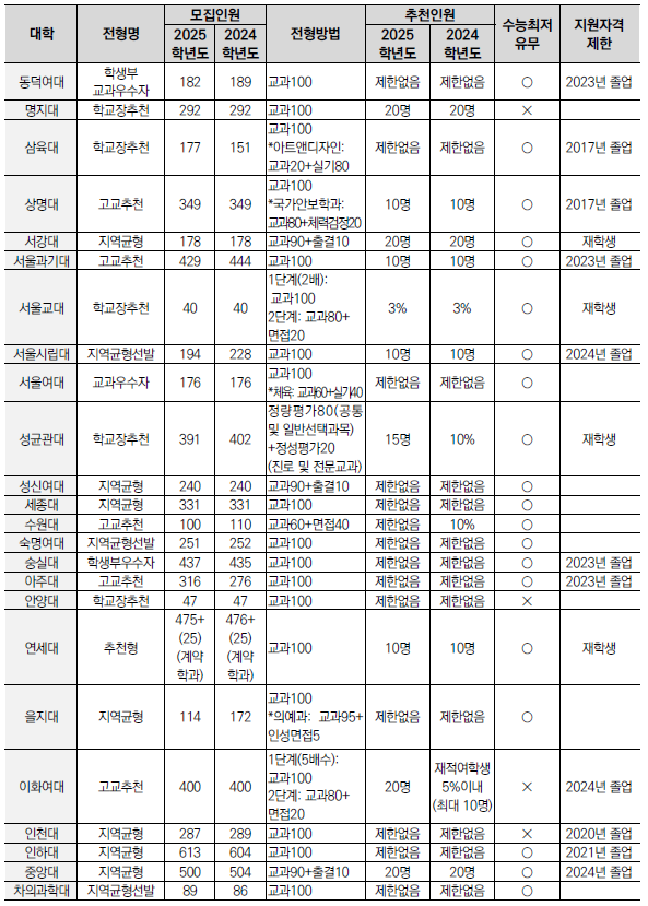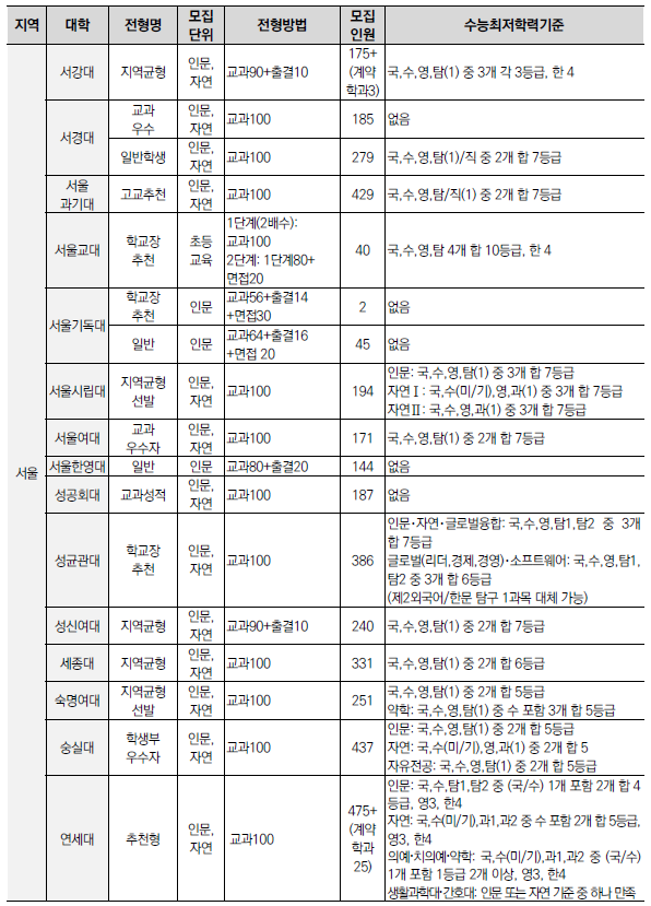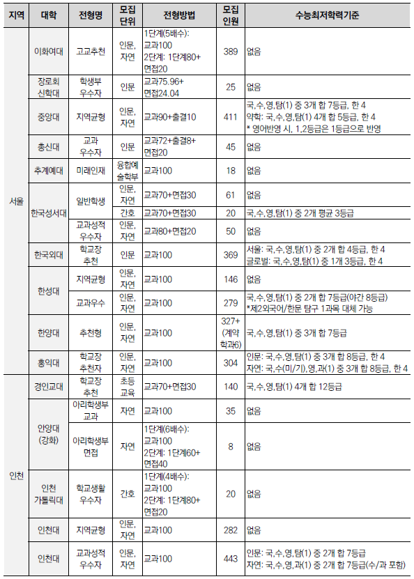 | 2025학년도 수시 모집 - 논술전형 특징(반영비율, 수능최저 등) (0) | 2024.01.24 |